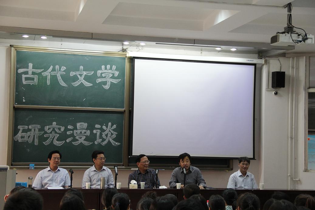 2016年5月21日晚6点30分,上海师范大学孙逊教授,暨南大学程国赋教授、王进驹教授,华南师范大学左鹏军教授应yl7703永利集团官网之邀,在07126室做了“古代文学研究漫谈”的学术报告。报告由yl7703永利集团官网栗永清副经理主持,yl7703永利集团官网部分教师、研究生和部分本科员工到场听取了报告。