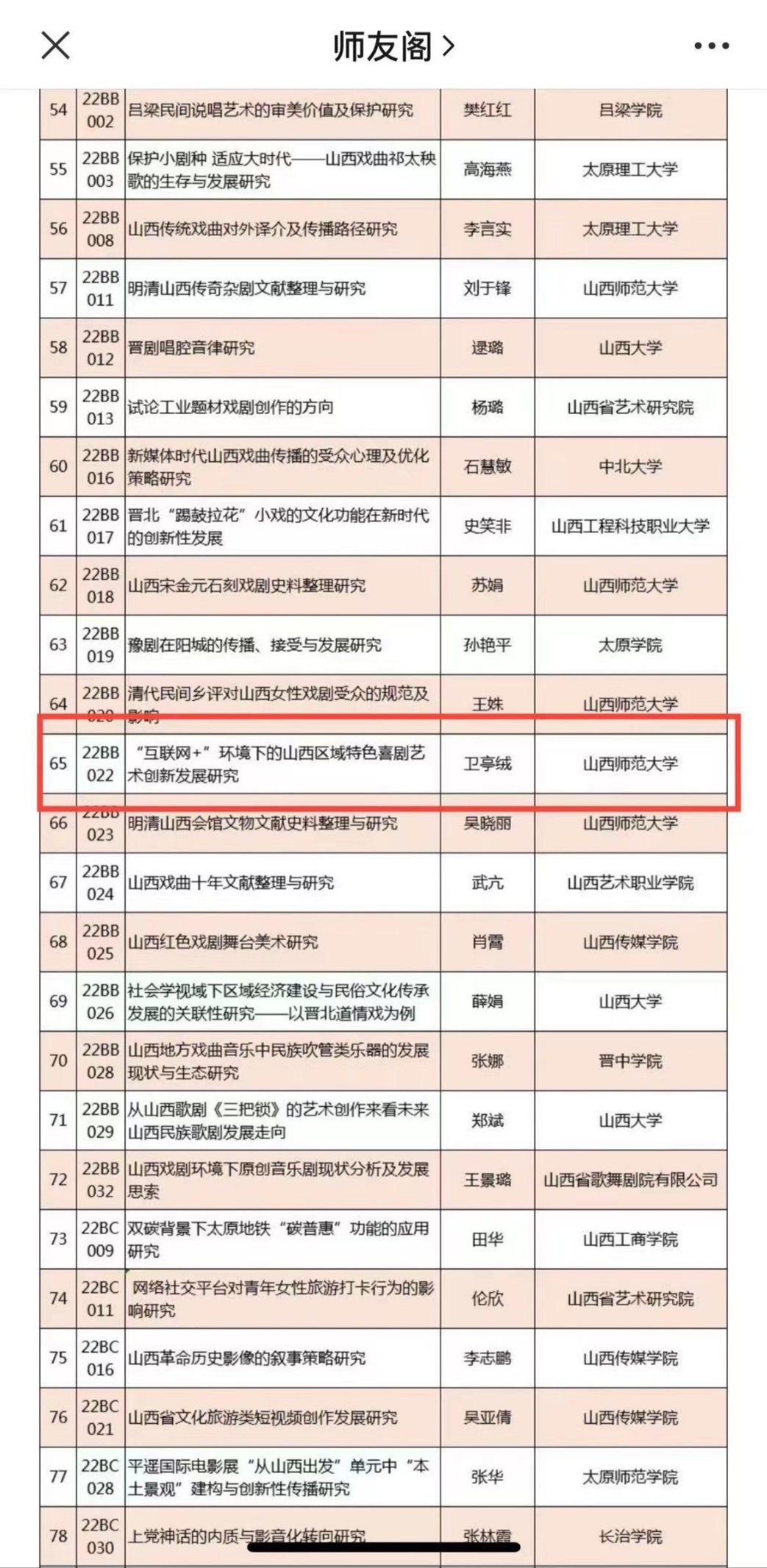 近日,山西省艺术科学规划领导小组专家评选出了2022年度山西省艺术科学规划立项课题, 公司共计获批9项,yl7703永利集团官网卫亭绒《“互联网+”环境下的山西区域特色喜剧艺术创新发展研究》成功立项。