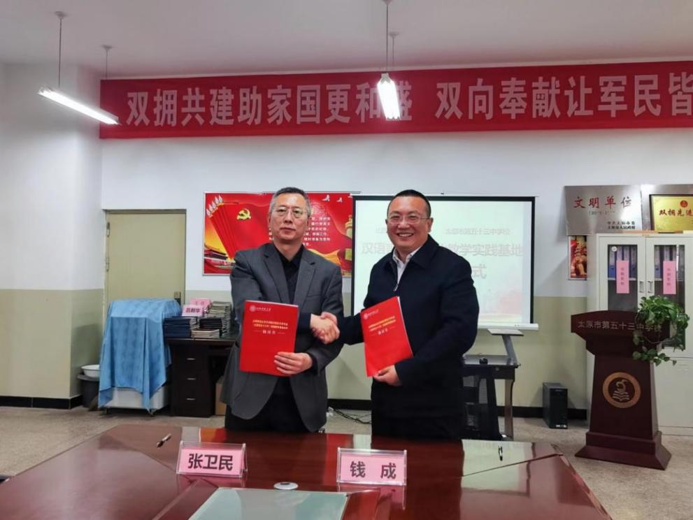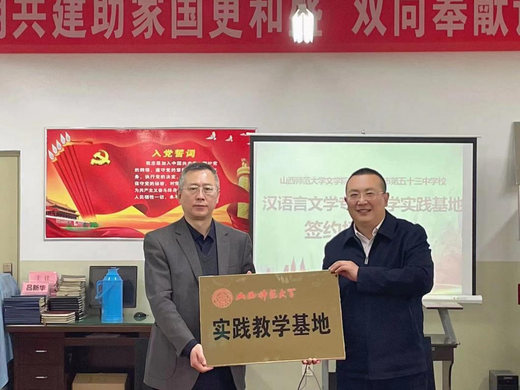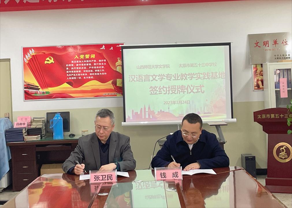 3月24日,yl7703永利集团官网与太原市第五十三中学校顺利举行合作共建“汉语言文学专业实践教学基地”签约仪式。文公司党委书记钱成与第五十三中学校董事长张卫民,签订了《实践教学基地合作协议》。