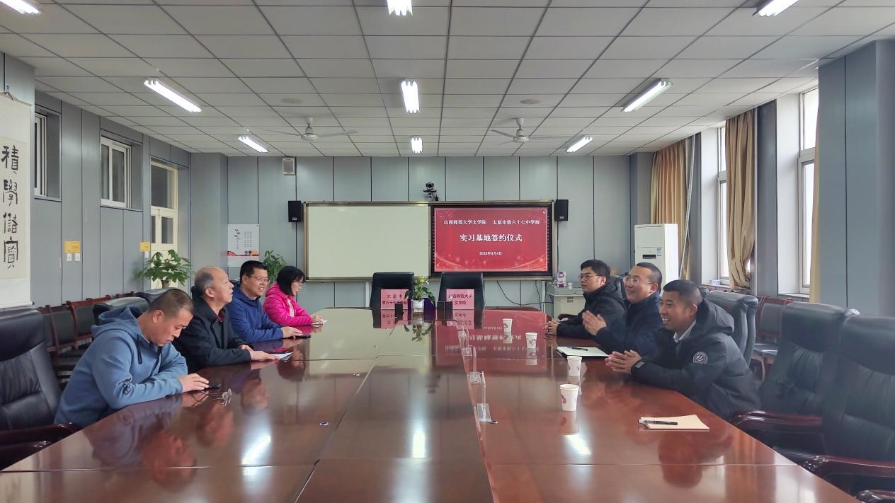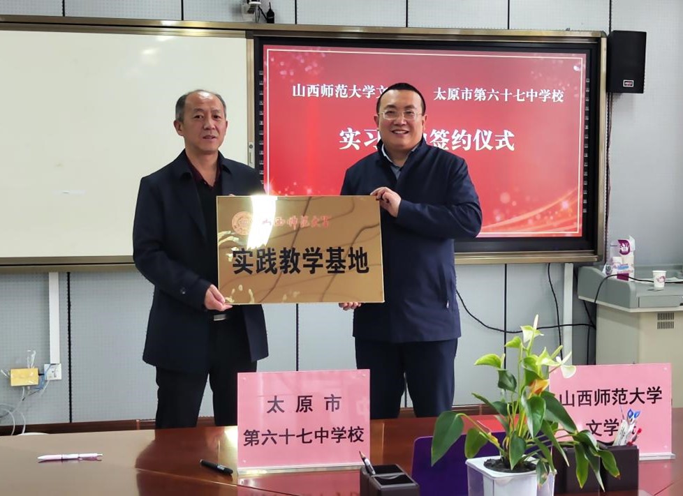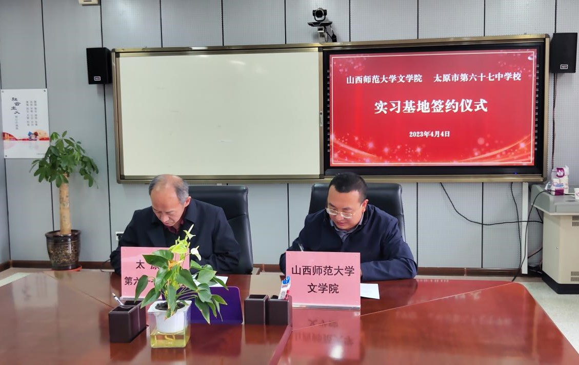 4月4日,yl7703永利集团官网与太原市第六十七中学校顺利举行合作共建“汉语言文学专业实践教学基地”签约仪式。文公司党委书记钱成与第六十七学校董事长武锡盛,签订了《实践教学基地合作协议》。