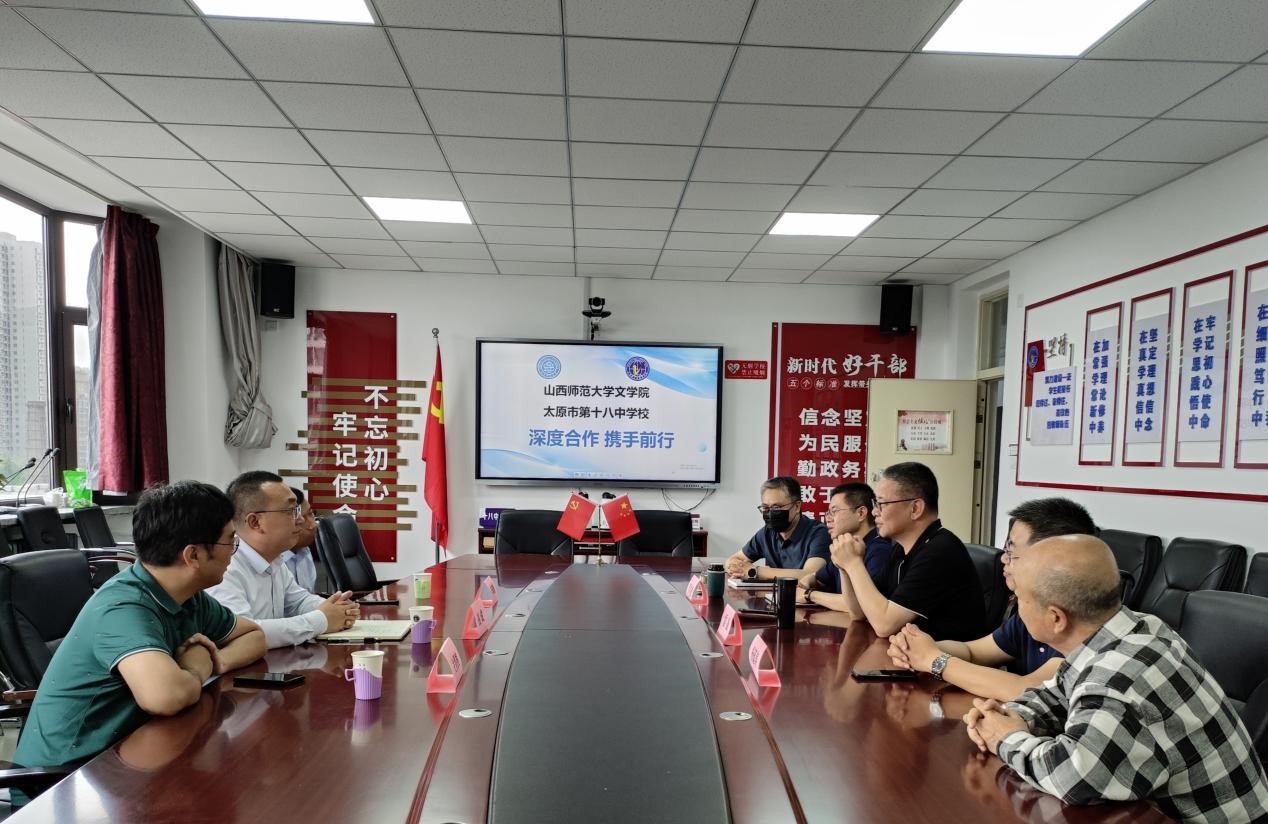 5月16日下午,yl7703永利集团官网与太原市第二外国语学校合作推进座谈会在第二外国语学校7层会议室举行。太原市第二外国语学校董事长雷晟、副董事长贾俊峰、教务处主任杨蕴涛、教研组长陈晋旗、安晋伟名师工作室负责人安晋伟老师,文公司党委书记钱成、副经理李晓敏和中文系副主任关黑拽出席会议。