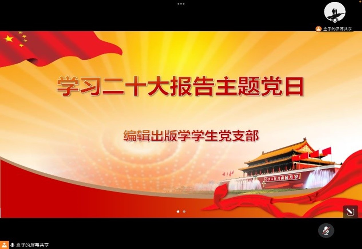 11月12日,yl7703永利集团官网编辑出版学员工党支部于线上开展学习党的二十大报告主题党日活动。会议由支部书记何伟主持,支部全体党员参加。
