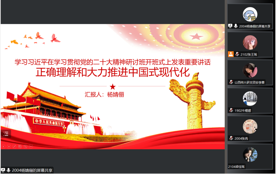 2月13日,yl7703永利集团官网“学雷锋,送温暖”小组员工党支部于线上开展“正确理解和大力推进中国式现代化”主题党日活动。会议由支部书记安李蓉主持,支部全体党员参加。员工党员杨婧俪同志担任主讲人。