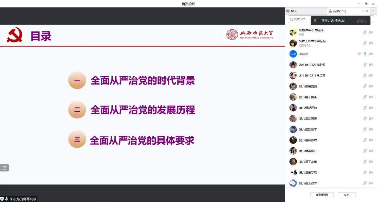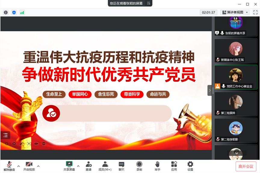 马克思主义学院副教授张昭从重温疫情斗争的历程和抗疫精神的主要内容入手,引导学员们学习抗疫精神争做新时代优秀共产党员。马克思主义学院副教授李志龙以“全面从严治党”为主题,从其时代背景、发展历程、具体要求三个方面详细论述了本项专题内容。