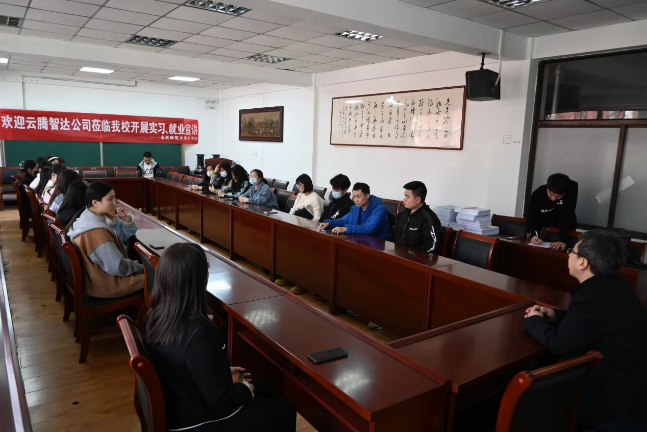 其中云腾智达公司招聘编辑出版学专业员工,修正酒业集团招聘汉语言文学专业员工。他们从公司文化、团队背景、业务内容、发展方向、住宿办公环境等方面进行了介绍。部分同学在会后参与了面试。