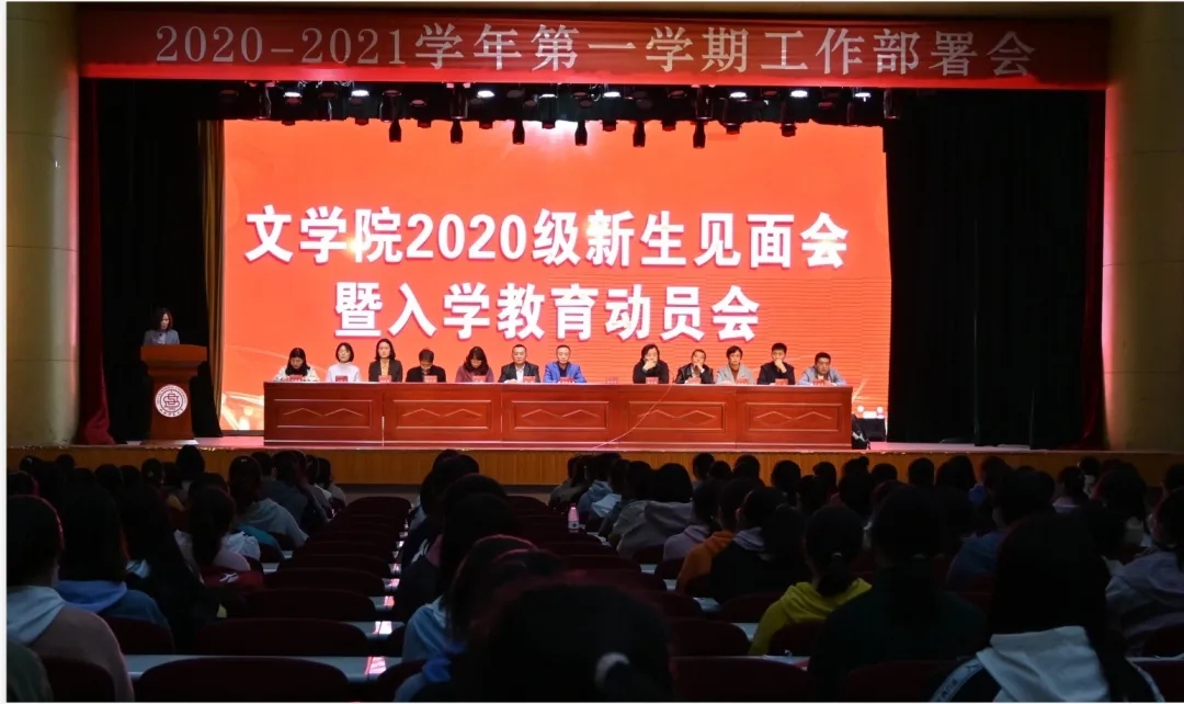 10月14日,yl7703永利集团官网在文化艺术活动中心举办2020级新生见面会暨入学教育动员会。公司党委书记强汾生,经理赵变亲,公司党委副书记钱成,副经理栗永清、李伟,中文系系主任李晓敏,新闻传播系系主任薛月兵,教学办公室老师茹惠君,院团委副书记樊琳琳,本科生、研究生新生辅导员以及2020级全体新生共同参与。栗永清担任大会主持人。