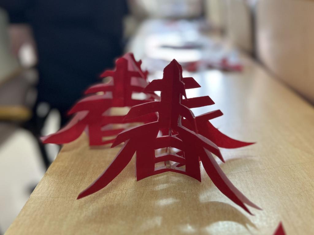 活动伊始,工作人员提前准备好红纸、剪刀等剪纸材料,并进行现场教学。小老师们用剪刀和红纸以传统的手工技法剪出雪花、优秀年画等作品,并鼓励大家积极动手进行剪纸创作。画纸折叠翻转,剪刀起起落落,一方红纸、一把剪刀、画纸翻飞,在小老师的悉心指导下,转眼间一个个栩栩如生的作品制作而成,刻画出美丽的校园风光、抗疫掠影、吉祥图画,体现党的二十大精神、清正廉洁,烘托出一片祥和热闹的氛围。同学们纷纷展示自己的作品,分享成功的喜悦。大家认真细致,细心绘制,用灵巧的双手在红纸上演绎着绝美的纸上舞蹈,活动最终在大家的欢笑声中落下了帷幕。