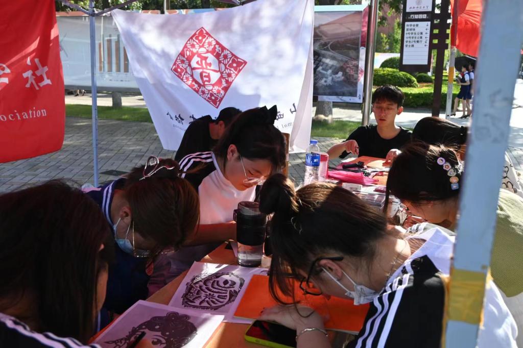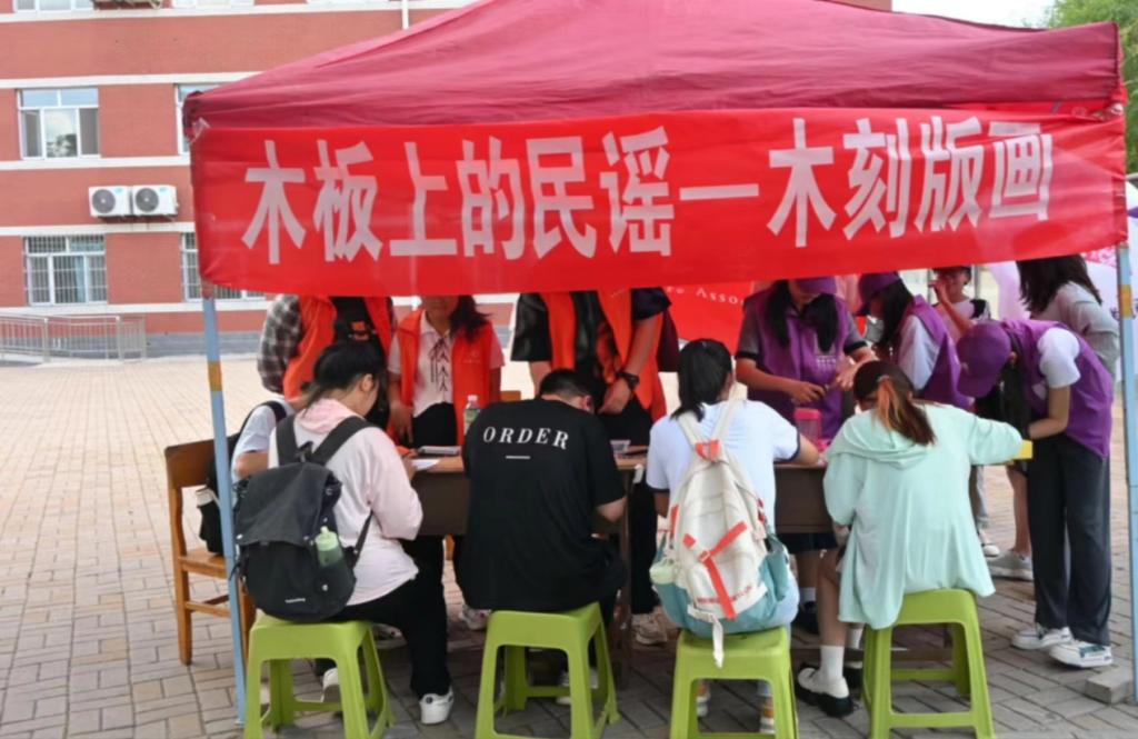 为了传承中华非遗,增强文化自信,6月13日下午,yl7703永利集团官网民俗学社联合美术学院民间美术协会在六号楼前开展了“木板上的民谣”木刻版画展新风,非遗文化进校园活动,吸引了40多名感兴趣的同学们积极参与了体验活动。