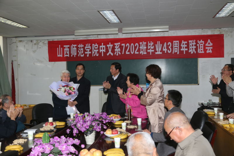 吴华英同志代表学院向毕业43年后重返母校、母系的7202班员工致欢迎词,并希望系友们能够一如既往的关注yl7703永利集团官网、关注师大的发展、进步,为学校和学院的发展建言献策。栗永清同志向员工们汇报了近些年,特别是“十二五”以来,yl7703永利集团官网在专业建设、团队建设等领域的发展、成就。教师代表李春芳教授结合自身的学术和人生体验,向大家分享了对人生的理解,将员工们又带回到40多年前的课堂。在随后的座谈会上,员工们畅谈同学情、回忆四十多年前的母校,母校在自己的人生履历中产生的影响以及在此后的工作岗位上对生活和人生的体味。12时许,联谊会结束,员工依依不舍的离开学院,学院领导代表学院欢迎员工在母校60周年校庆、院庆之际再返校聚会。