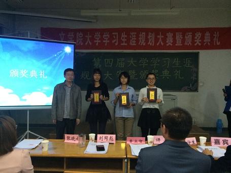 经过统计,决赛结果最终确定,主持人宣布了获奖者名单。其中,优秀奖获得者为郭晓红、刘小宁、张凯蓉、梁培菁。三等奖颁发给了张明娜、程婧华、刘丹三位同学,冀肖冰、郝静怡分享了二等奖,冠军则由决赛中唯一的男选手刘钰斩获。嘉宾和评委老师先后为获奖选手颁发证书和奖品,并与选手合影留念。至此,本次大赛圆满落幕。规划在纸上,落实靠行动。参赛选手和广大同学深知:学习生涯规划比赛只是暂时的,而按照规划坚持落实并不断完善直至目标的实现,则是同学们未来几年老员工活的主题。