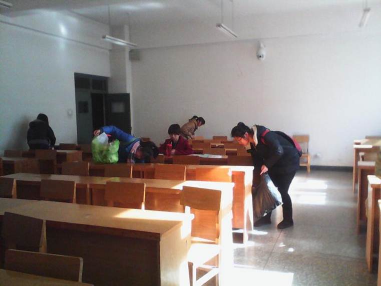 11月28日感恩节当天,在有各方面的大力支持下,公司青协组织五十余名志愿者分为三批前往师表路、员工餐厅及十二号教学楼等多个地点进行卫生打扫。凌晨4时许,第一批志愿者在西门集合完毕后,带着清洁工具分别到师表路指定地点进行了清理和打扫;中午,第二批志愿者在员工餐厅,对员工饭后的餐桌地面进行了擦拭与清理;同时,第三批志愿者也赶到十二号教学楼,在清洁工阿姨的指导下,对各个教室的桌子、地面和讲台进行了打扫。活动中,同学们深切地体验到了清洁工、保洁员、餐饮工作人员们平时工作的辛苦与伟大,纷纷表示今后要更加尊敬这些可亲可敬的劳动者,以及要加倍珍惜各种劳动的成果。