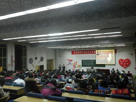 11月30日,公司青协在浩森餐饮公司的大力赞助下,在05203举办了“感恩从心开始,让爱温暖彼此”的大型感恩主题晚会,活动邀请了公司党委副书记、学工组组长强汾生,团委书记孙学虎,浩森餐饮公司的负责人,临汾特教学校的老师,以及校青协负责人和各兄弟学院青协负责人参加。晚会形式多样,丰富多彩,小游戏穿插其中,视频《远方在哪里》感情真挚,催人泪下,与晚会主题紧密结合。晚会中,公司领导、浩森餐饮负责人及特教学校老师为麻袋基金会的成立隆重剪彩,标志着“麻袋基金会”的正式成立和运转。