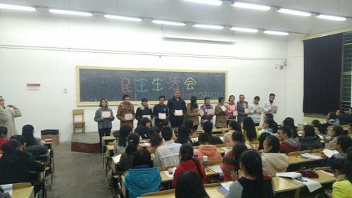 会议的高潮出现在民主生活会的重头戏--自由发言阶段。在此阶段,同学们踊跃发言,尤其是卫程虎同学的发言,句句深入人心,幽默风趣,用如火的热情给了大一新生坚持下去的动力,让大家对自己今后的目标更加明确。