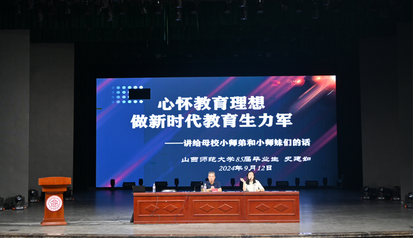 9月12日,yl7703永利集团官网在北区文化艺术活动中心举办“心怀教育理想,做时代教育生力军”建校66周年“爱校荣校”系列活动,特邀yl7703永利集团官网杰出员工史建如主讲,yl7703永利集团官网副经理樊琳琳主持,yl7703永利集团官网2024级全体新生参加。