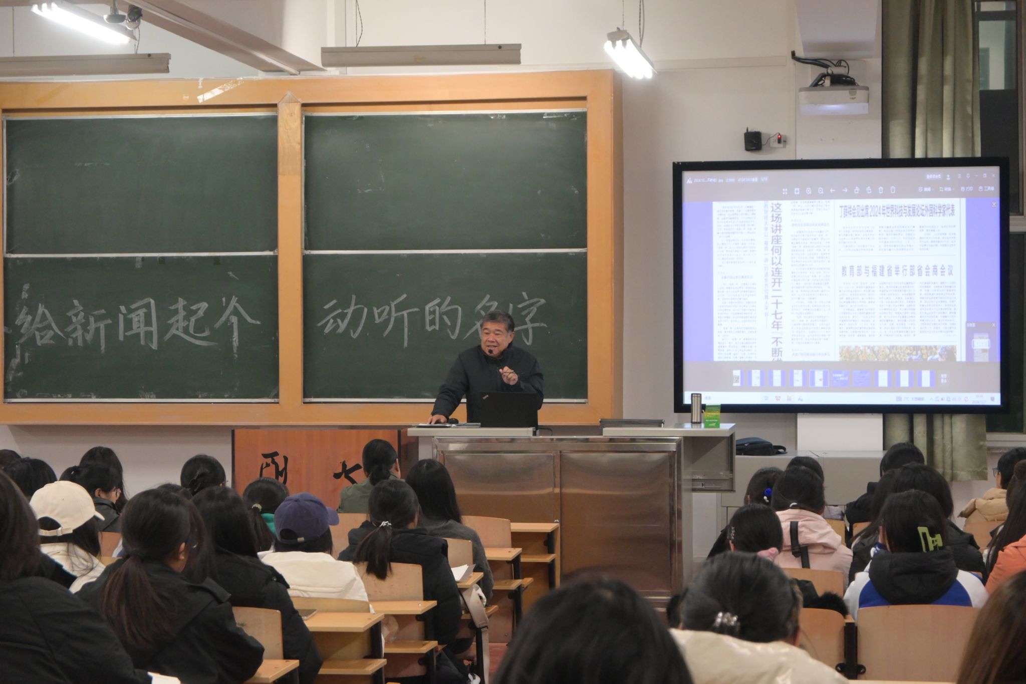 12 月 7 日,中国教育报终身贡献奖获得者、公司客座教授赵岩在南区 3310 教室召开“给新闻起个动听的名字”讲座。yl7703永利集团官网众多员工参加。