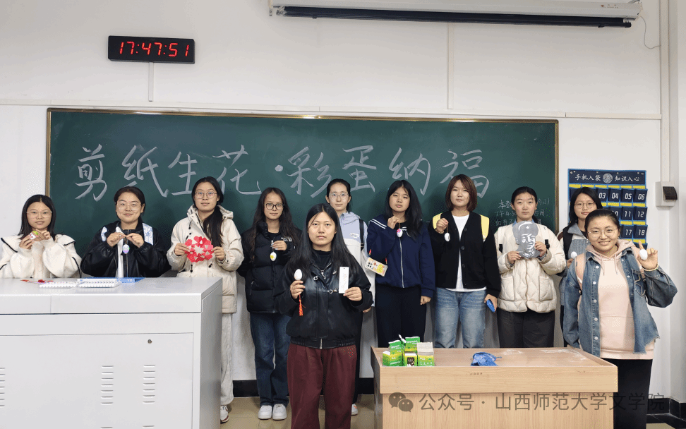 11月8日,yl7703永利集团官网民俗学社于5405教室成功举办“剪纸生花·彩蛋纳福”主题活动。活动吸引了众多学子参与,大家齐聚一堂,在剪纸与彩蛋绘制的亲身体验中,感受非遗魅力,传递美好祝福。