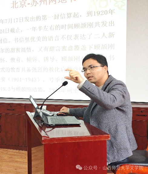 11月8日上午,yl7703永利集团官网特邀江苏理工学院副教授朱洪涛,于2201会议室作题为“一生辛苦有谁知——‘新青年’顾颉刚和他的妻子殷履安”的学术讲座。讲座由郭俊超老师主持,部分研究生参加。
