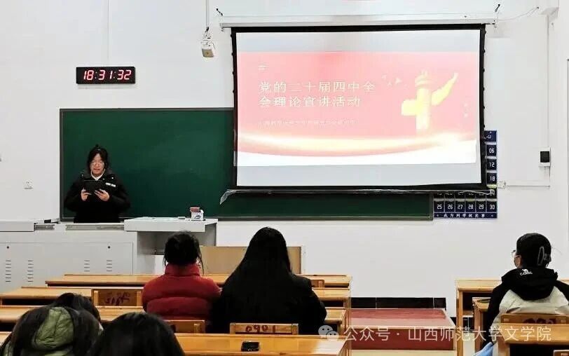 活动以专题讲解、视频放映等形式展开。宣讲人以清晰脉络梳理了党的二十届四中全会的重要背景,系统阐释了党的二十届四中全会作为我国即将完成“十四五”规划、迈向“十五五”关键时期召开的重要会议,为国家未来发展擘画了宏伟蓝图,具有重大而深远的意义。随后,现场播放了全会专题视频,带领大家重温“十四五”时期我国在复杂环境中迎难而上、砥砺前行的奋斗历程,也让同学们对“十五五”时期的发展目标有了更清晰的认知。视频结束后,宣讲人号召同学们在专业学习中锤炼本领,在实践创新中增长才干,为中国式现代化建设添砖加瓦。