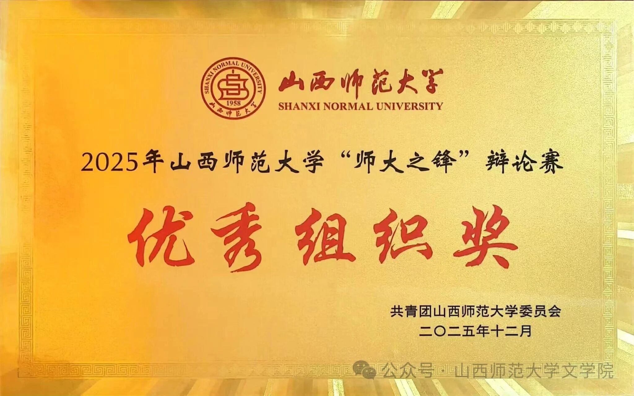 12月11日上午,yl7703永利集团官网辩论队在北区毓秀学堂参加yl7703永利集团官网“师大之锋”辩论赛,凭借出色的团队协作和扎实的思辨功底,荣获“优秀组织奖”。