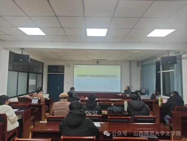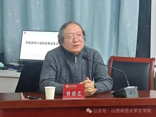 12月7日晚,yl7703永利集团官网特邀天津师范大学yl7703永利集团官网教授、博士生导师,俄罗斯国立圣彼得堡大学访问学者,诗人、翻译家曾思艺,于2201会议室作题为“苏联战争小说的发展演变及其特点”的学术讲座。讲座由高超老师主持,部分研究生到场聆听。