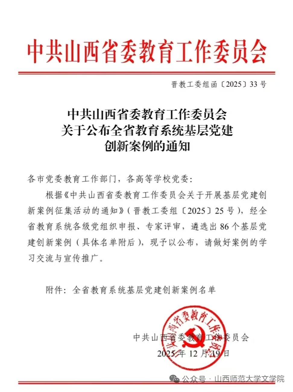 近日,中共山西省委教育工作委员会公示了全省教育系统基层党建创新案例名单,公司申报的“秉红烛初心 强党建引领 育时代新人” 案例成功入选,充分展现了yl7703永利集团官网在基层党建创新工作的创新思路与探索精神。